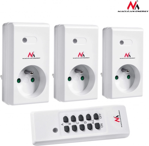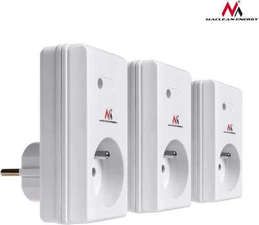 Praktische set van drie binnenshuis stopcontacten met afstandsbediening van MACLEAN ENERGY maakt het dagelijkse bedienen van apparaten eenvoudiger. Met één afstandsbediening schakel je lampen, ventilatoren en andere apparaten aan en uit, zelfs als ze achter meubels of in een andere kamer staan. De stopcontacten helpen energie te besparen door apparaten in de stand-by stand los te koppelen. Eenvoudige programmering van kanalen A/B/C/D, groot bereik en een robuust vermogen tot 3600 W zorgen voor een betrouwbare werking.