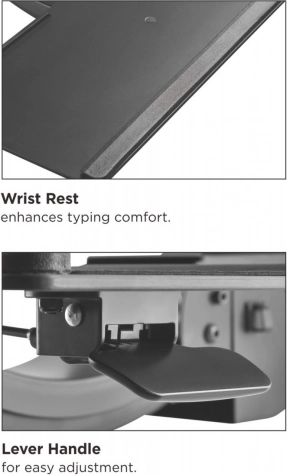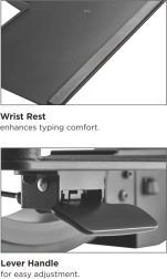 Creëer een ergonomische werkplek met de onderhangende toetsenbordlade die direct onder het bureaublad wordt gemonteerd. Dankzij het brede verstelbereik pas je eenvoudig hoogte, kanteling en rotatie aan, zodat typen comfortabel is bij zowel zitten als staan en spanning in schouders en polsen afneemt.