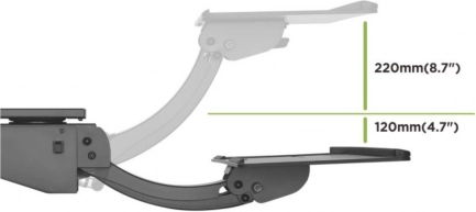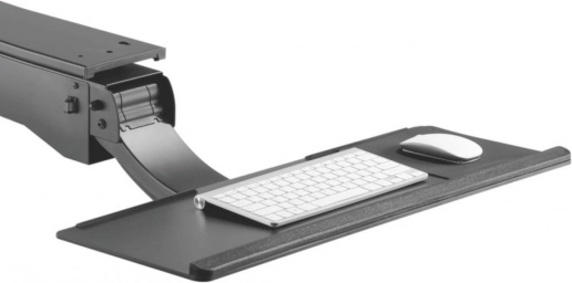 Het schuifmechanisme met uitschuifbare armen zorgt voor een vloeiende instelling van de afstand van het toetsenbord tot de rand van het bureau, precies naar jouw wens.