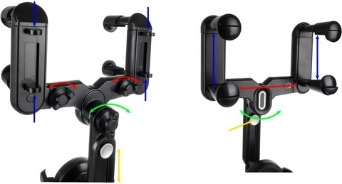 - Volledige flexibiliteit: 360° draaibaar gewricht, hoogte- en breedteverstelling.