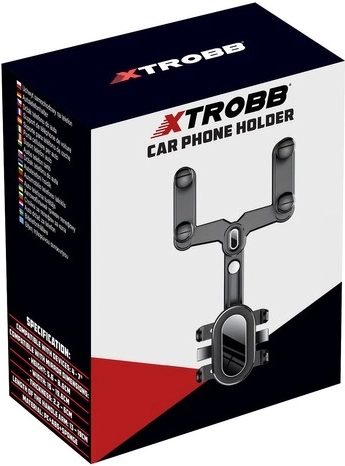 De universele draaibare telefoonhouder voor de achteruitkijkspiegel in de auto XTROBB zorgt voor stabiele bevestiging, volledige 360° verstelling en bescherming van apparaat en spiegel. Dankzij de stevige constructie, foam-inlays en snelle montage zonder gereedschap is hij ideaal voor navigatie en handsfree bellen zonder het zicht te belemmeren.