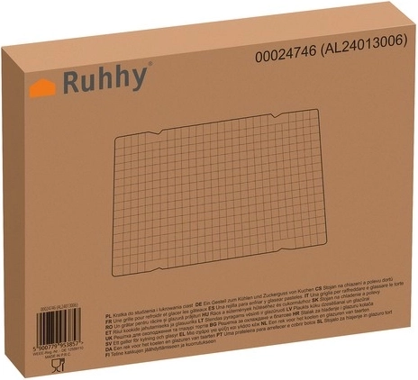 Het RUHHY koelrooster met afmetingen 40 × 25 × 1 cm is een onmisbare hulp voor bakliefhebbers. De robuuste constructie van koolstofstaal en vier stabiele pootjes zorgen voor gelijkmatige luchtstroom onder en boven het gebak, zodat taarten, koekjes, muffins en biscuitbodems sneller afkoelen zonder vochtophoping.