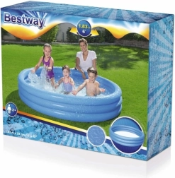 Afmeting 1,83 m x 33 cm, 3 ass.: groen, blauw, rood; inhoud van de verpakking: opblaasbaar zwembad, reparatiepatch