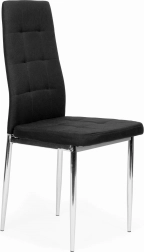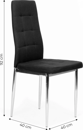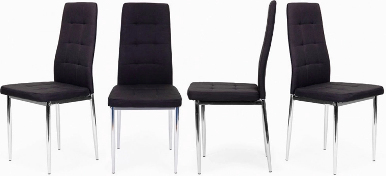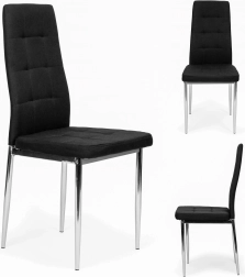 Breng een nieuwe stijl in uw huis met deze set van vier moderne zwarte stoelen met verchroomde poten, die zijn ontworpen voor een stijlvolle en comfortabele zitervaring. Deze stoelen passen gemakkelijk bij elke familietafel en hun elegante ontwerp in zwart kunstleer geeft uw interieur een stijlvolle uitstraling. Ze zijn de ideale keuze voor wie een moderne oplossing zoekt zonder in te leveren op comfort.