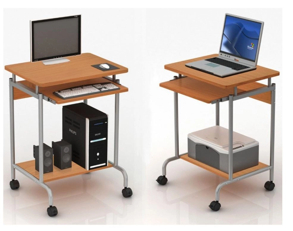 De compacte computertafel is ideaal voor kleine ruimtes – perfect voor een laptop of een kleinere pc. Hij biedt een uittrekbaar toetsenbordplateau, een hoofdwerkblad, een onderste legplank voor een pc-kast of printer en een stabiele metalen constructie in combinatie met platen van MDF in beukendecor.