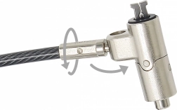 De slotkop draait en kantelt, zodat je de kabel makkelijk kunt leiden in krappe ruimtes en je werkplek netjes blijft.