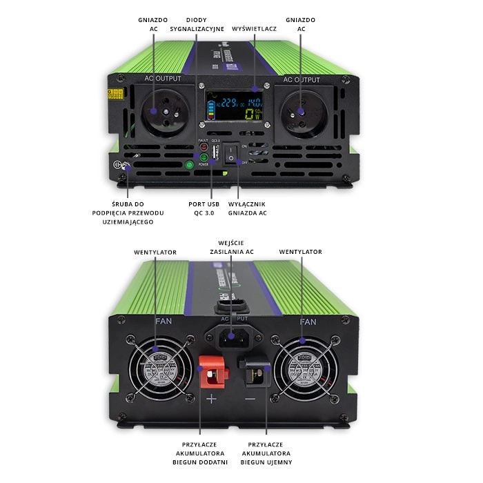 De Qoltec spanningsomvormer met zuivere sinusgolf-uitgang is ideaal voor gebruik in campers, jachten en op trips, evenals voor noodstroom thuis. Met ondersteuning voor het aansluiten van AC- en DC-apparaten en eenvoudig prestatiemonitoring via het LCD-scherm zorgt hij voor veilig functioneren van uw apparatuur.