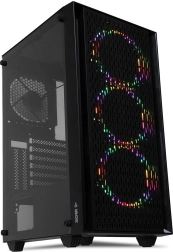 - Frontmesh/gestuurde luchtstroom met drie 120 mm LED-ventilatoren