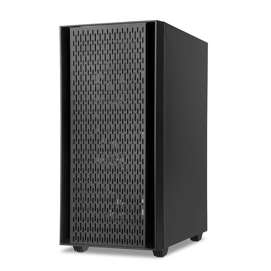 De behuizing gebruikt ondermontage van de voeding in een afzonderlijke tunnel voor betere bekabeling en thermische scheiding van de rest van het systeem. Het magnetische stoffilter maakt onderhoud eenvoudig, terwijl het bovenpaneel gemakkelijke toegang biedt tot USB-poorten, de aan/uit- en resetknop, bediening van de LED-verlichting en HD Audio.