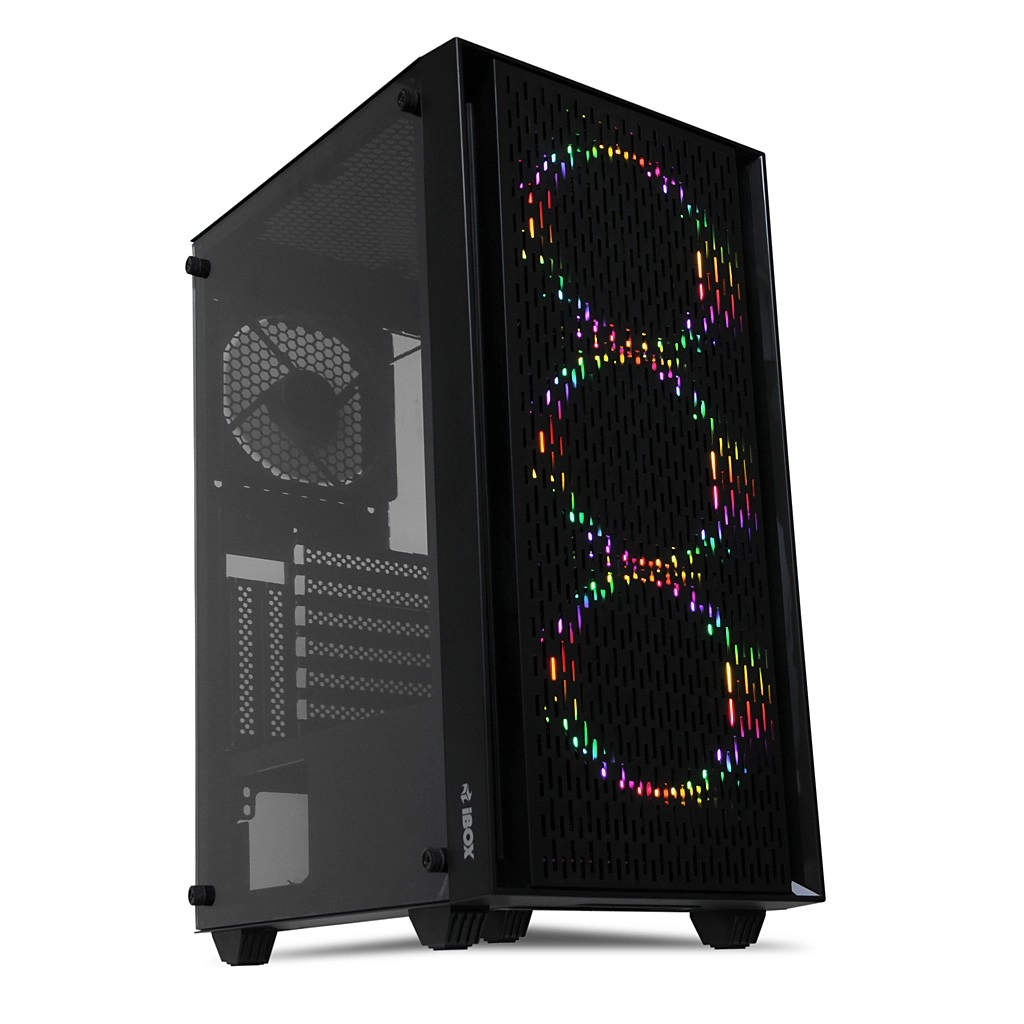 De iBOX CETUS 903 is een aantrekkelijke pc-behuizing voor gamers en enthousiastelingen die hun componenten willen showen via de zijkant van gehard glas en tegelijk lage temperaturen willen behouden. Het frontpaneel met drie 120 mm LED-ventilatoren in combinatie met een 120 mm achterventilator zorgt voor een vloeiende airflow en betrouwbare koeling.