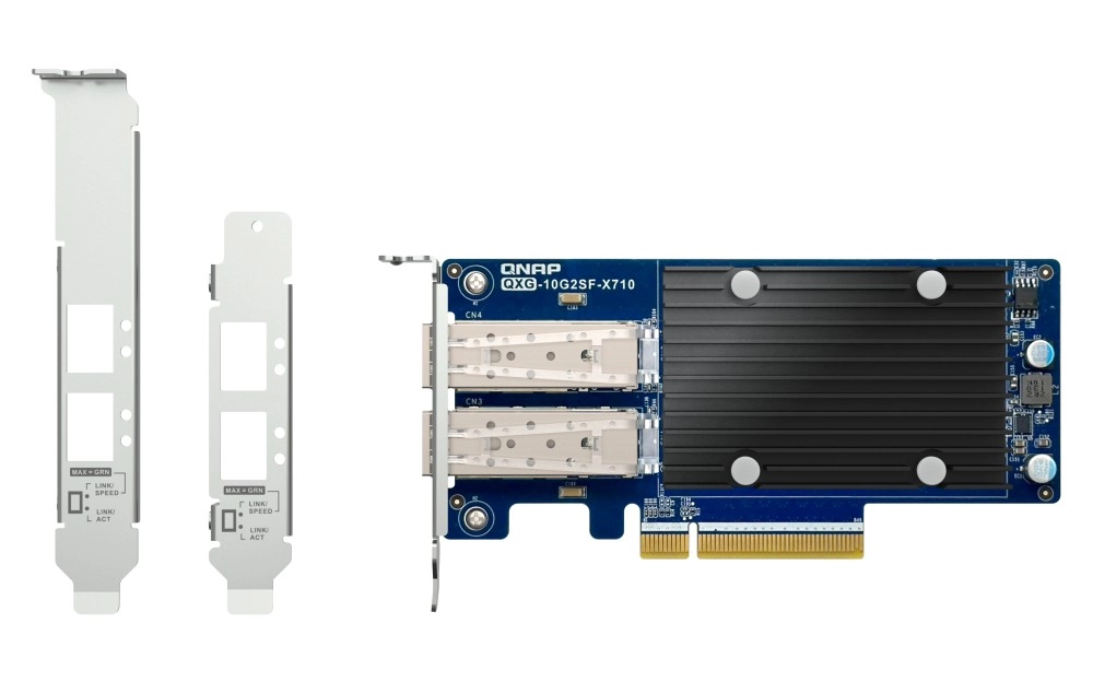 De QNAP QXG-10G2SF-X710 is een professionele netwerkkaart met twee SFP+-poorten (10G/1G) die high-speed 10GbE-connectiviteit naar werkstations en NAS-servers brengt. Dankzij de grote passieve koelplaat werkt hij volledig zonder ventilator en is daarmee geschikt voor omgevingen die gevoelig zijn voor geluid.