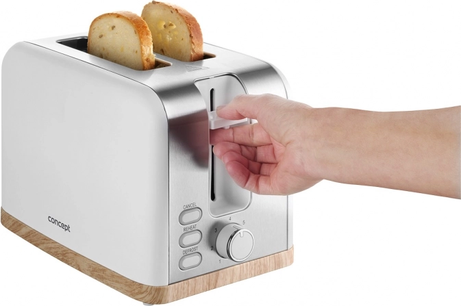 De Concept Elwood TE2015 broodrooster is uitgerust met een automatische centreren functie die ervoor zorgt dat de snede brood altijd gelijkmatig wordt geroosterd. Dankzij de hoge uitwerpfunctie kan de toast eenvoudig en veilig worden verwijderd, terwijl de antislipvoetjes zorgen voor maximale stabiliteit tijdens gebruik.