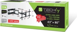De Techly muurbeugel is ontworpen voor gebruikers die een veilige en flexibele oplossing zoeken voor wandmontage van hun televisie. Geschikt voor tv’s met een diagonaal van 43" tot 80" en een maximaal gewicht tot 50 kg. Dankzij de verlengde arm met een bereik tot 1015 mm kunt u de positie van de tv eenvoudig aanpassen aan uw wensen.