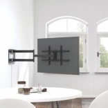 De beugel biedt een brede reeks instellingen, waaronder kantelen van +5° tot -15°, zwenken tot ±90° en het instellen van de afstand tot de muur tussen 82 en 1015 mm. Compatibiliteit met VESA-standaarden van 200x200 mm tot 800x400 mm zorgt ervoor dat hij met de meeste beschikbare tv-modellen kan worden gebruikt.