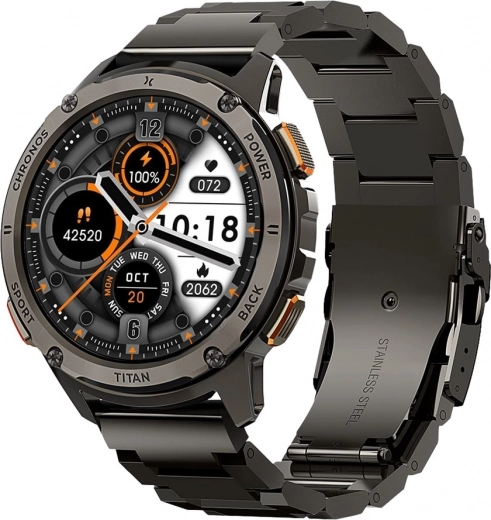Zoek je een slimme horloge waarop je kunt vertrouwen? De MAXCOM Titan Chronos bouwt op een robuuste metalen afwerking en een strak, sportief uiterlijk. Het ronde display met contrasterende oranje accenten zorgt voor uitstekende leesbaarheid en geeft je altijd de belangrijkste informatie over beweging en gezondheid bij de hand.