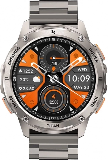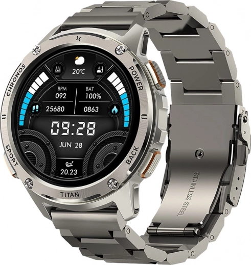 De Maxcom Titan Chronos zijn ontworpen om lang mee te gaan. Robuust roestvrij staal, een metalen band en duidelijke bedienelementen geven het horloge een uitstraling én duurzaamheid waarop je kunt vertrouwen. Het goed afleesbare display toont duidelijk tijd, datum, weer en batterijniveau, zodat je het belangrijkste altijd in beeld hebt.