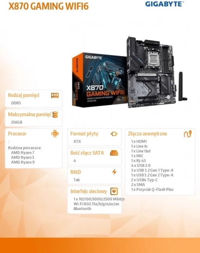 Bouw een snelle en stabiele gaming-pc met het X870‑moederbord met AM5‑socket. Het biedt ondersteuning voor AMD Ryzen 9000/8000/7000‑processors, DDR5 in dual‑channel, razendsnelle M.2 inclusief PCIe 5.0 x4, 2,5GbE LAN en Wi‑Fi 6E en twee USB4‑poorten type C met DP‑Alt. Koeling wordt verzorgd door VRM Thermal Armor Advanced en M.2 Thermal Guard, terwijl EZ‑Latch schroefloze bevestigingen de montage versnellen.
