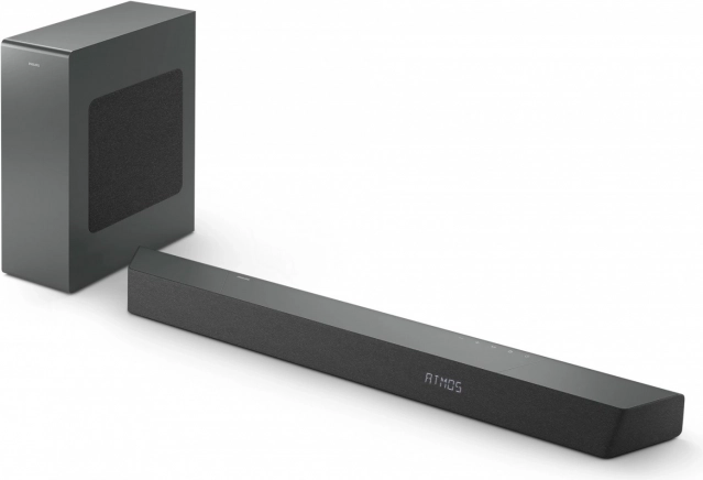 De Philips 3.1‑soundbar brengt bioscoopgeluid naar je woonkamer. De configuratie met 3.1 kanalen en een draadloze subwoofer, met een vermogen tot 600 W, geeft films en muziek kracht, helderheid en levendigheid. Dolby Atmos creëert virtueel 3D‑geluid dat om je heen en boven je beweegt, zodat je midden in de actie zit.