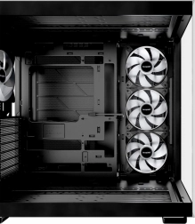 Grote transparante voor- en zijpanelen bieden een geweldig panoramisch zicht op alle pc-componenten.