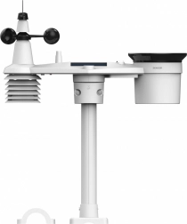 - 7‑in‑1 sensor: wind (snelheid/vlagen/richting), neerslag, temperatuur, luchtvochtigheid, UV, licht