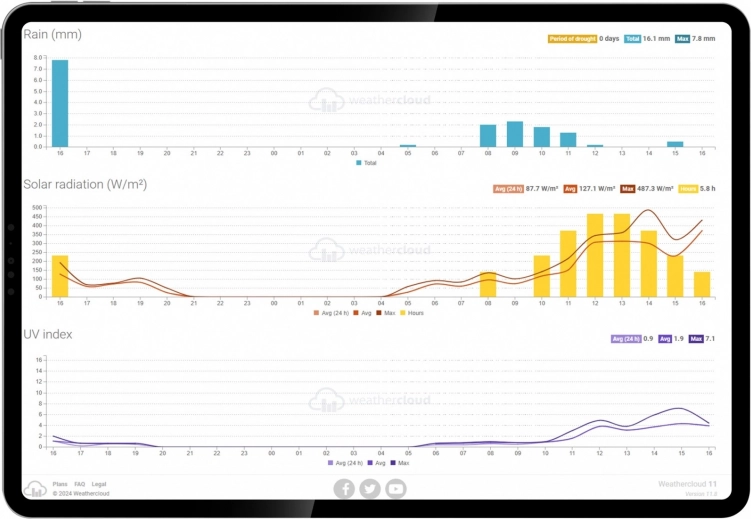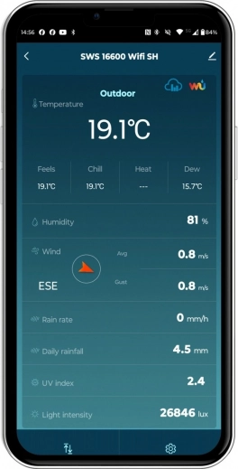 - Wi‑Fi publicatie van data naar Weather Underground/Weathercloud + eigen platform