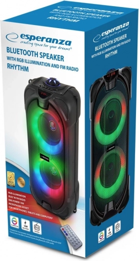 De Bluetooth-luidspreker Esperanza Rythm is een ideale keuze voor liefhebbers van hoogwaardige sound en een strak design. Dankzij de FM-radio en de microfoonaansluiting is hij perfect voor karaoke-avonden.
