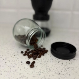 Inclusief 2 glazen potten – één om in te malen en één voor opslag. Dankzij de luchtdichte afsluiting behoudt je koffie langer versheid en aroma.