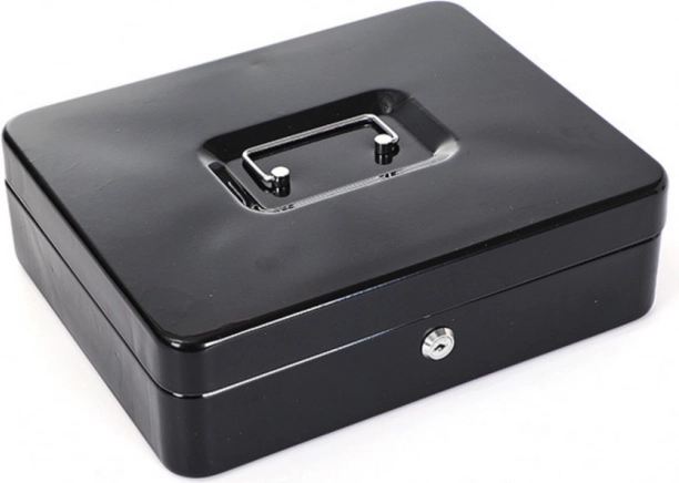 Metalen geldkist voor geld, sleutels en documenten, zwart, 20 × 16 × 9 cm