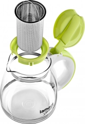 De theepot is uitgerust met een roestvrijstalen infuser, ideaal voor losse thee, en eenvoudig te reinigen.