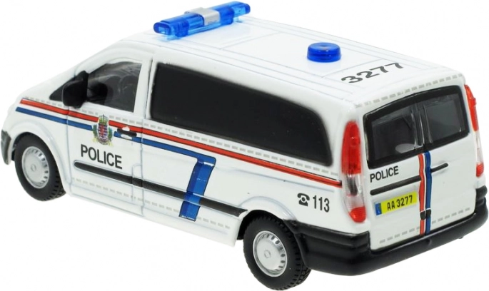 Gedetailleerd uitgewerkt model van de Mercedes‑Benz Vito politiebus op schaal 1:50 dat zowel jonge bestuurders als verzamelaars zal verrassen. Metalen carrosserie met kunststof details biedt realistische kenmerken, een compact formaat van ca. 10 cm en een duurzame constructie geschikt voor kinderen vanaf 3 jaar.