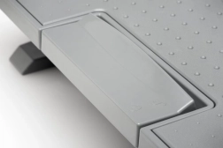 - Een vergrendelbaar pedaal maakt het mogelijk de voetensteun af te stellen zonder uit uw stoel op te staan.