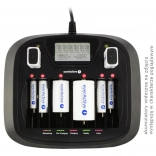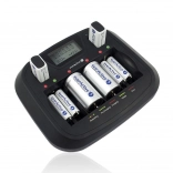 Krachtige universele acculader EVERACTIVE met 8 onafhankelijke kanalen en een duidelijk LCD‑display. Laadt moeiteloos Ni‑MH AA/AAA/C/D en 9V, ondersteunt herstel (refresh) en ontladen en kan ook individuele cellen en ongewone combinaties aan. Voorzien van een USB‑poort en LED‑statusindicatie voor elke sleuf.