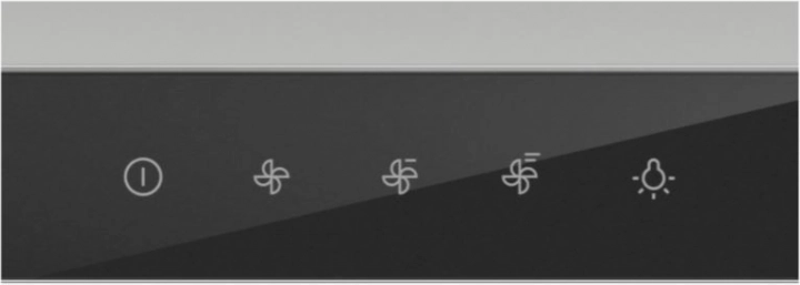 Het overzichtelijke paneel met touch-iconen maakt het mogelijk om snel ventilatorsnelheden te kiezen en met één tik de verlichting in te schakelen.