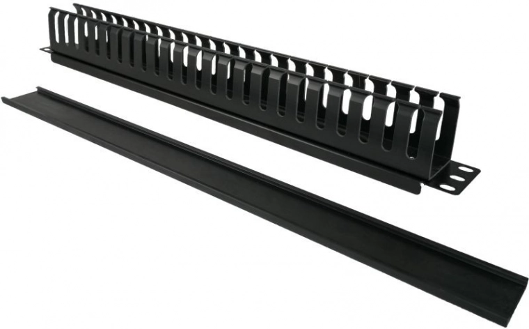 Rangschik de bekabeling in de serverkast snel en overzichtelijk. Deze 1U organizer voor 19" kasten is uitgerust met een afdekkap van flexibel kunststof en een robuuste basis van staalplaat met een dikte van 1,2 mm. Minimaliseert het risico op accidentele kabelbeschadiging en verbetert zowel de luchtstroom als de service-toegankelijkheid.