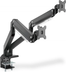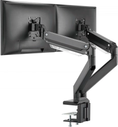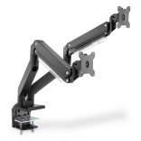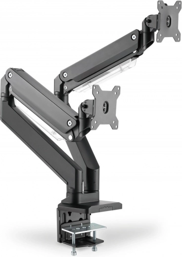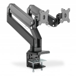 Ergonomische afstelling van de monitorpositie zorgt voor comfort en efficiëntie. Deze houder voor twee monitoren is eenvoudig te installeren met behulp van een klembevestiging voor monitoren tot 35" en een gewicht tot 15 kg per stuk.