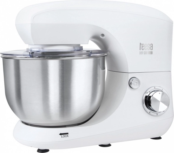De grote roestvrijstalen kom met een inhoud van 5,5 liter is ideaal voor grotere hoeveelheden deeg of crèmes. Er is ook een beschermdeksel inbegrepen, waarmee u de keuken tijdens het mengen schoon houdt. In de verpakking vindt u een deeghaak, een vlakke klopper (menger) en een draadgarde – elk opzetstuk is ontworpen voor een perfect resultaat bij de betreffende taak.