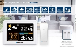 Het Blaupunkt WS30WH weerstation is een betrouwbare hulp in huis voor klimaatcontrole. In realtime toont het de temperatuur en luchtvochtigheid binnen en buiten, volgt het hun trends en bewaart het dagelijkse minima en maxima. Dankzij de grafische 12–24 uurs voorspelling schat je eenvoudig wat je te wachten staat. De ingebouwde barometer geeft de absolute luchtdruk weer.