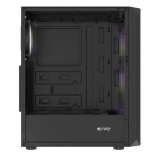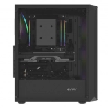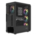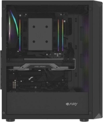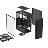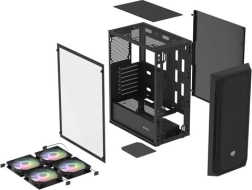 Drie 120mm RGB‑ventilatoren aan de voorkant + één achteraan, mesh‑front en geventileerd topgedeelte voor lage temperaturen, zelfs onder belasting. Mogelijkheid om tot 8 ventilatoren te installeren.