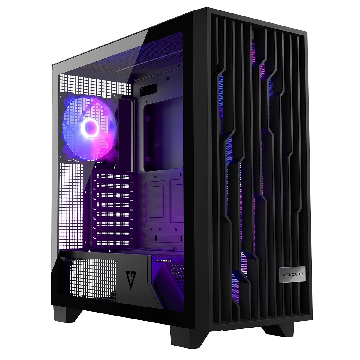 Door bliksem geïnspireerd design, doordachte ventilatie en ruimte voor high-end componenten – dat is de VOLCANO Perun Apex ARGB. Het front met mesh en vier voorgeïnstalleerde 140mm ARGB-ventilatoren zorgen voor een krachtige aanvoer van koele lucht, terwijl het zijpaneel van gehard glas je build stijlvol laat zien. Het bovenste I/O‑paneel met USB‑C en 2× USB 3.0 maakt dagelijks gebruik aangenaam.