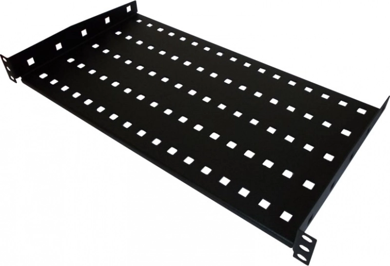 Een speciaal geperforeerde basis zorgt voor voldoende ventilatie voor geplaatste apparaten en draagt bij aan een optimale warmteafvoer. Twee bevestigingspunten maken eenvoudige installatie in de kast mogelijk, wat zorgt voor een veilige bevestiging van de plank.