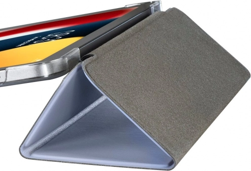 De slanke Hama Fold Clear-hoes met transparante achterkant benadrukt de moderne lijnen van de iPad Air 10,9" en zijn stijlvolle design.