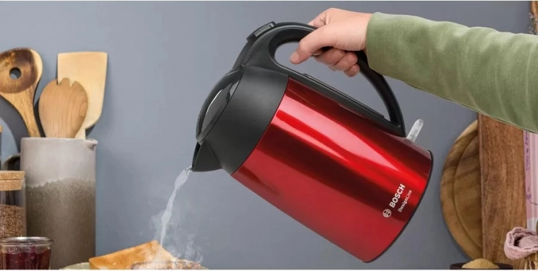 Drievoudige bescherming met automatische uitschakelingDe waterkoker schakelt automatisch uit zodra het water kookt of de gewenste temperatuur bereikt is. De drievoudige bescherming voorkomt oververhitting of droogkoken en zorgt zo voor veilig gebruik.