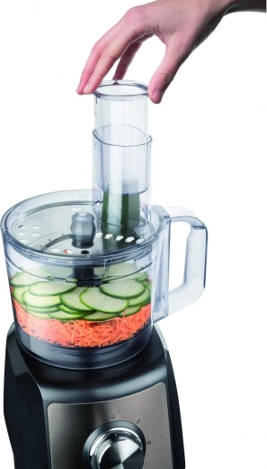 Krachtige keukenrobot met een kom van 1,5 l die dagelijkse bereidingen snel en moeiteloos aankan. Biedt 2 snelheden en een pulswerking voor nauwkeurige verwerking van ingrediënten, roestvrijstalen schijven voor raspen en snijden, een citrusperskegel en een praktische spatel voor het gemakkelijk verwijderen van deeg. Het elegante design met roestvrijstalen Anti‑Fingerprint afwerking blijft schoon en vrij van vingerafdrukken.