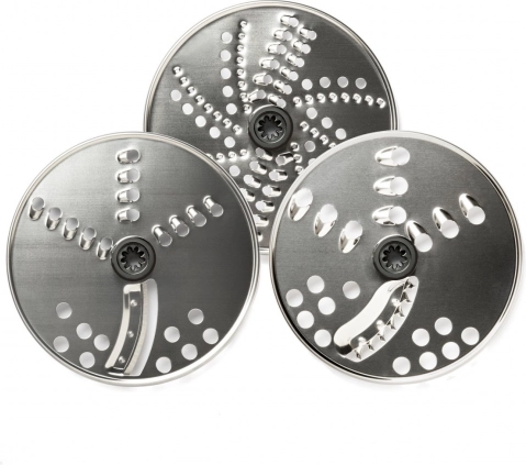 - 3 roestvrijstalen dubbelwerkende schijven voor snijden en raspen