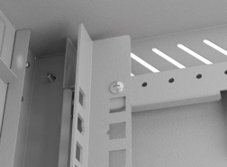 De kast is gemaakt van hoogwaardig staal, wat stabiliteit en een lange levensduur garandeert. Twee extra achterste montagebeugels verhogen de veiligheid en vergemakkelijken de installatie van diverse apparaten.