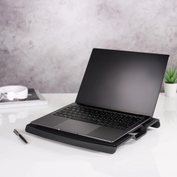 Antislip rubberen voetjes en een stevige constructie houden de mat op zijn plaats en laten lucht vrij onder de laptop circuleren.