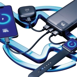 De Multi‑Charge technologie maakt het mogelijk 3 apparaten tegelijk op te laden, en sluit je de powerbank tegelijkertijd op netstroom aan, dan kun je zelfs een vierde apparaat toevoegen. De Pass‑Through functie zorgt voor veilig gelijktijdig laden van de powerbank en de aangesloten apparaten. Het geïntegreerde LED‑display informeert over de actuele laadstatus, zodat je je energie altijd onder controle hebt.