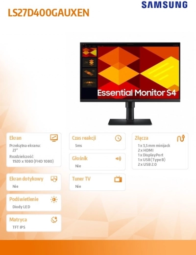 Geniet van een scherp beeld en vloeiende weergave met de 27" S40GD-monitor. Dankzij het IPS-paneel, de resolutie Full HD (1920 × 1080) en de verversingssnelheid van 100 Hz krijg je uitstekende kwaliteit voor werk en ontspanning. De ergonomische standaard met hoogteverstelling (HAS) en pivot verhoogt het comfort bij langdurig gebruik, terwijl de uitgebreide connectiviteit 2× HDMI, 1× DisplayPort, 2× USB‑A 2.0, 1× USB‑B het aansluiten van randapparatuur vergemakkelijkt. Een responstijd van 5 ms zorgt voor vlotte reacties bij gamen en multitasken.