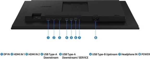- Brede connectiviteit – 2× HDMI, 1× DP, USB-hub (2× USB‑A 2.0 + 1× USB‑B upstream).