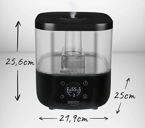 Stijlvolle ultrasone luchtbevochtiger CAMRY CR 7973 met LED-display en touchbediening zorgt voor een ideale luchtvochtigheid in huis. Biedt vullen van bovenaf voor eenvoudig gebruik, een stille nachtmodus, automatisch uitschakelen bij waterschaarste en nauwkeurige weergave van de actuele luchtvochtigheid op het display. De krachtige werking van 100–260 ml/u houdt de lucht het hele jaar door aangenaam fris.